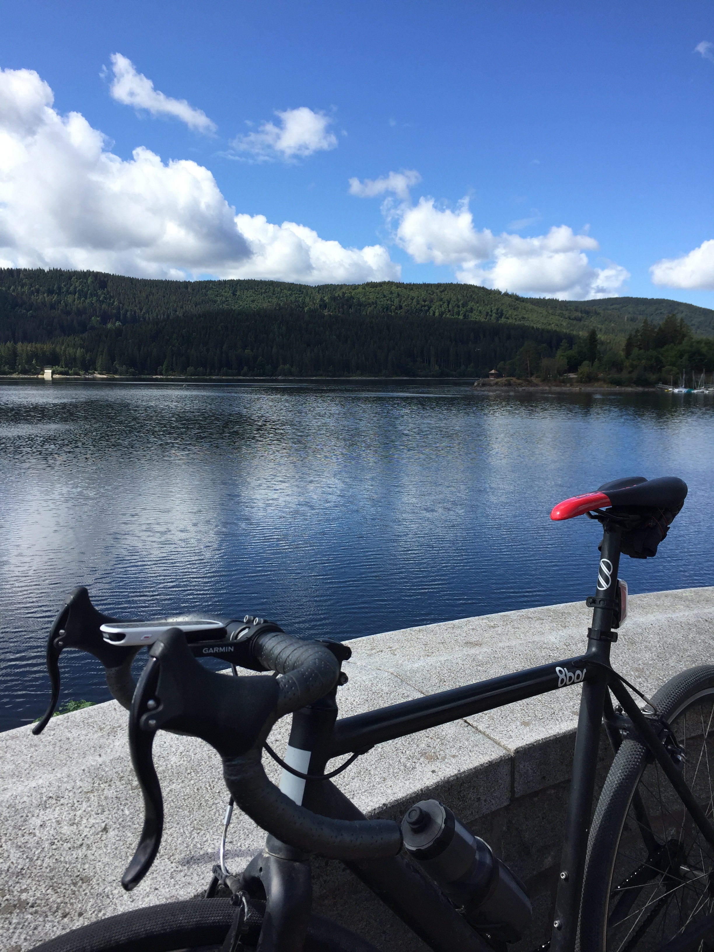 Nach heftigem Monsun-Regen am Donnerstagabend, dem Hotel-Betreten mit durchtränkten Bike-Outfit, deftigem Abendessen und ebenso umfangreichen Frühstück den ganzen Freitag im Sattel: über endlose Schotterstrassen mitten durch grüne Nadelwälder, immer dem Schluchsee entgegen. Leicht hügelig, immer wieder brutal anstrengend, ultraschön. Dann liegt er plötzlich vor mir, mitten im Grün zwischen Nadelspitzen blitzt er hervor: Der Schluchsee. Baden kann warten, Ess- und Kaffeestop haben Vorrang – danach gleich weiter. Denn baden geht nicht: Das Wasser ist (sehr) viel zu kalt. War doch nix mit dem angepeilten Ziel und Titel dieses Beitrags – schade. Spielt aber auch keine grosse Rolle.