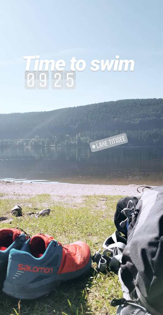 [09:20-10:15] Schwimmen im Titisee: Morgens um halb 10 neben 10 Rentnern in den See eintauchen und abkühlen nach den ersten 3 Stunden Wandern? Einfach herrlich! #schwummammorgenvertreibtkummerundsorgen