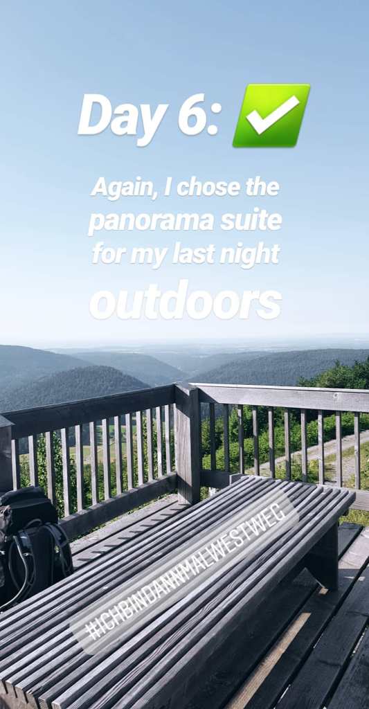 […] Später unterwegs einige sehr spannende Kilometer mit Charlotte, die ich auf dem Westweg kennenlerne. Mal eine gute Abwechslung im Vergleich zum Alleine-Wandern tief im Wald.